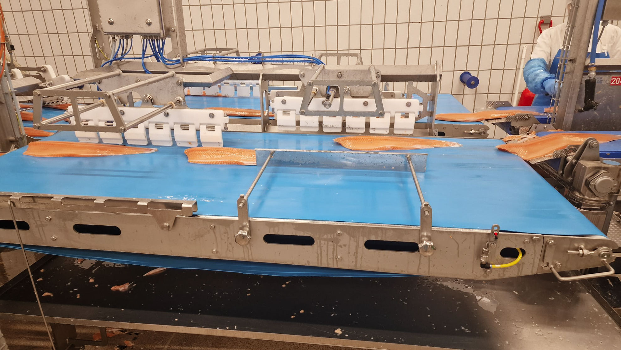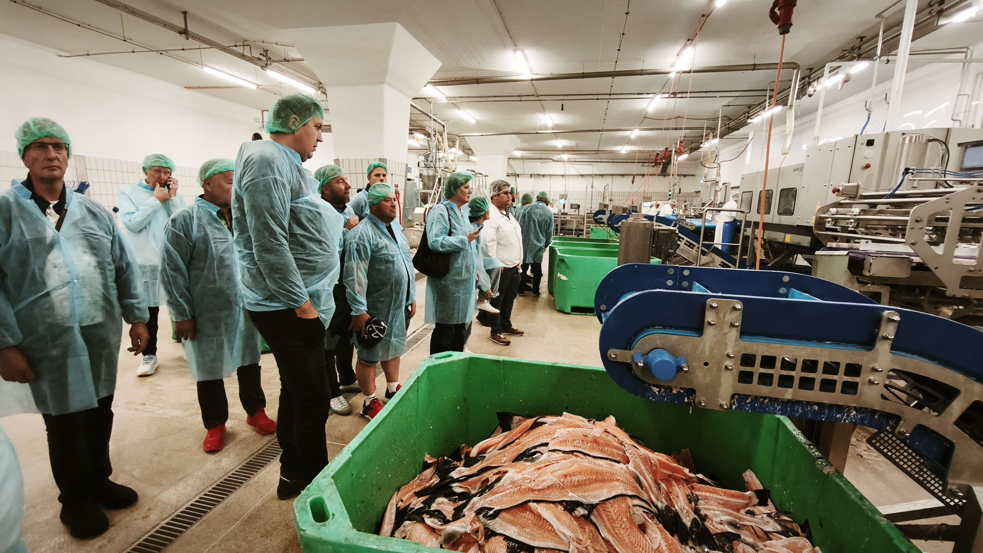 Mums bija iespēja apskatīt uzņēmuma telpas. Vienā daļā izvietotas uzņēmuma “Bader” ražotas iekārtas, kur notiek lielo zivju (laši, mencas) apstrāde. Tā tiek veikta pamatā automatizēti cilvēku uzraudzībā – zivis tiek filetētas, no tām ar īpašu iekārtu tiek izņemtas sānu asakas, atdalītas muguras un vēdera spuras, tālāk filejas tiek automātiski sagrieztas gabaliņos, nosvērtas un ievietotas iepakojumos.