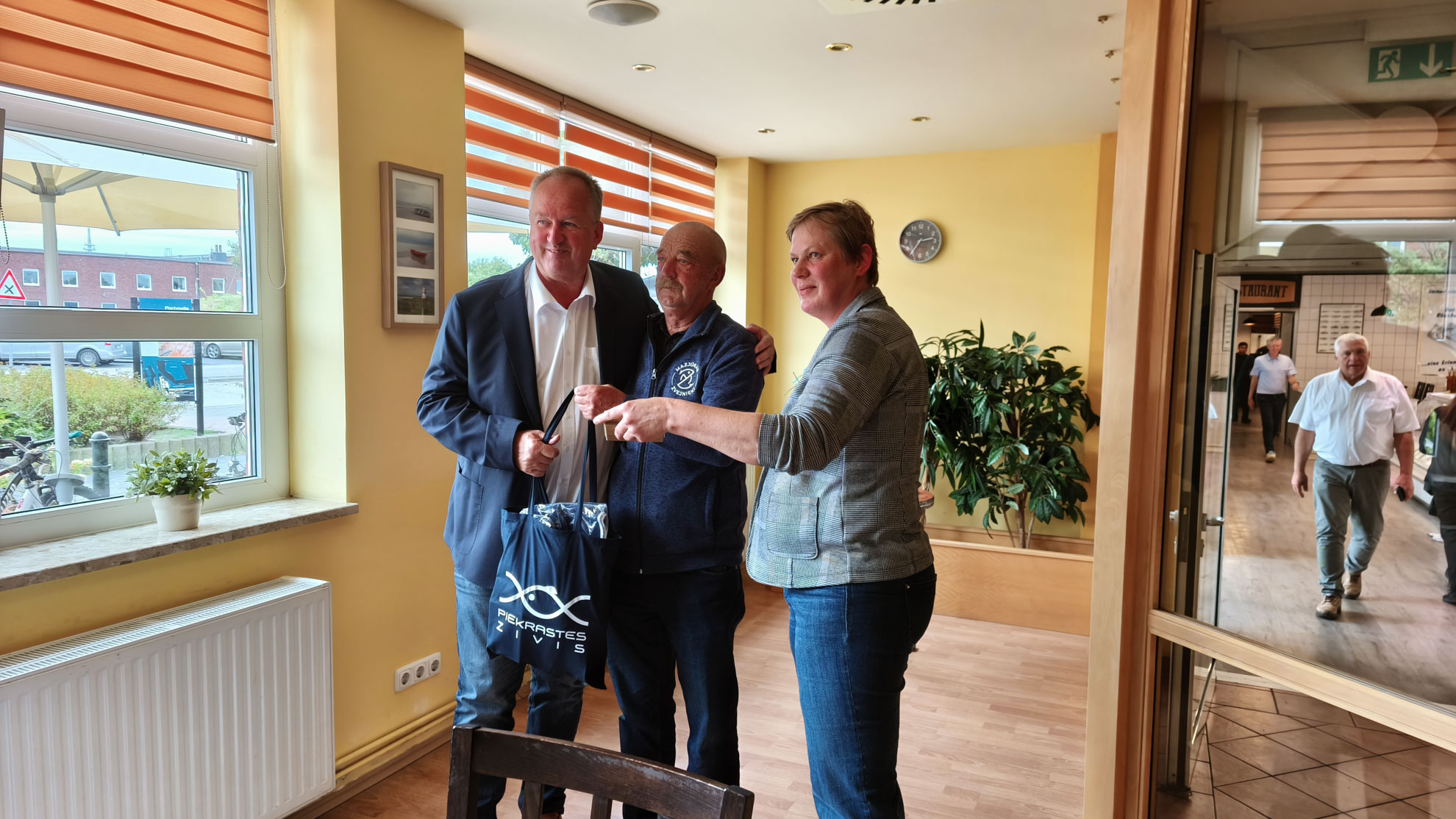 Mūs uzņēma pilsētas birģermeistars Jurgens Peters, kooperatīva vadītājs, biedrības “Ostas draugi” pārstāvis, kapteinis Manfrēds Gekens, kā arī reģiona FLAG (zivsaimniecības rīcības grupas) vadītājs Marko Vithohns. Klāt bija arī Latvijas goda konsula Lejassaksijā palīdze Dace Piesika, kura sniedza atbalstu pieredzes apmaiņas brauciena organizēšanā.